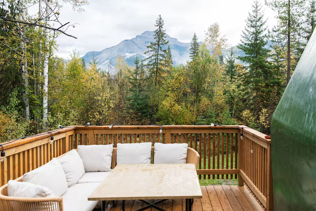 Wake up to snowy peaks, fresh forest air, and brewed coffee your way