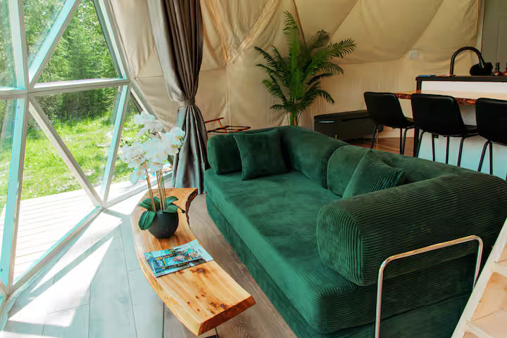 Wonderfull place for a vacation .. we absolutely lkved our stay. The dome looks to be brand new and spotless .. very well designed for space and comfort.. this has full kitchen with more than you need .. multiple coffee options .. deers roaming around the dome in the morning.. breathtaking view of mountains from the Dome .. barbecue, fire pit what not! You experience stay in woods and mountains with ultra luxurious amenities.. highly recommended